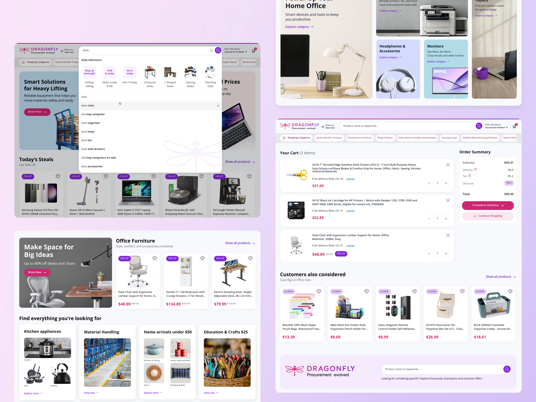 Dragonfly is an e-commerce marketplace designed to make online shopping simple, enjoyable, and visually inspiring. The platform brings together a broad assortment of products and needed a clear structure that helps users easily explore categories, discover products, and move confidently through the purchase flow.