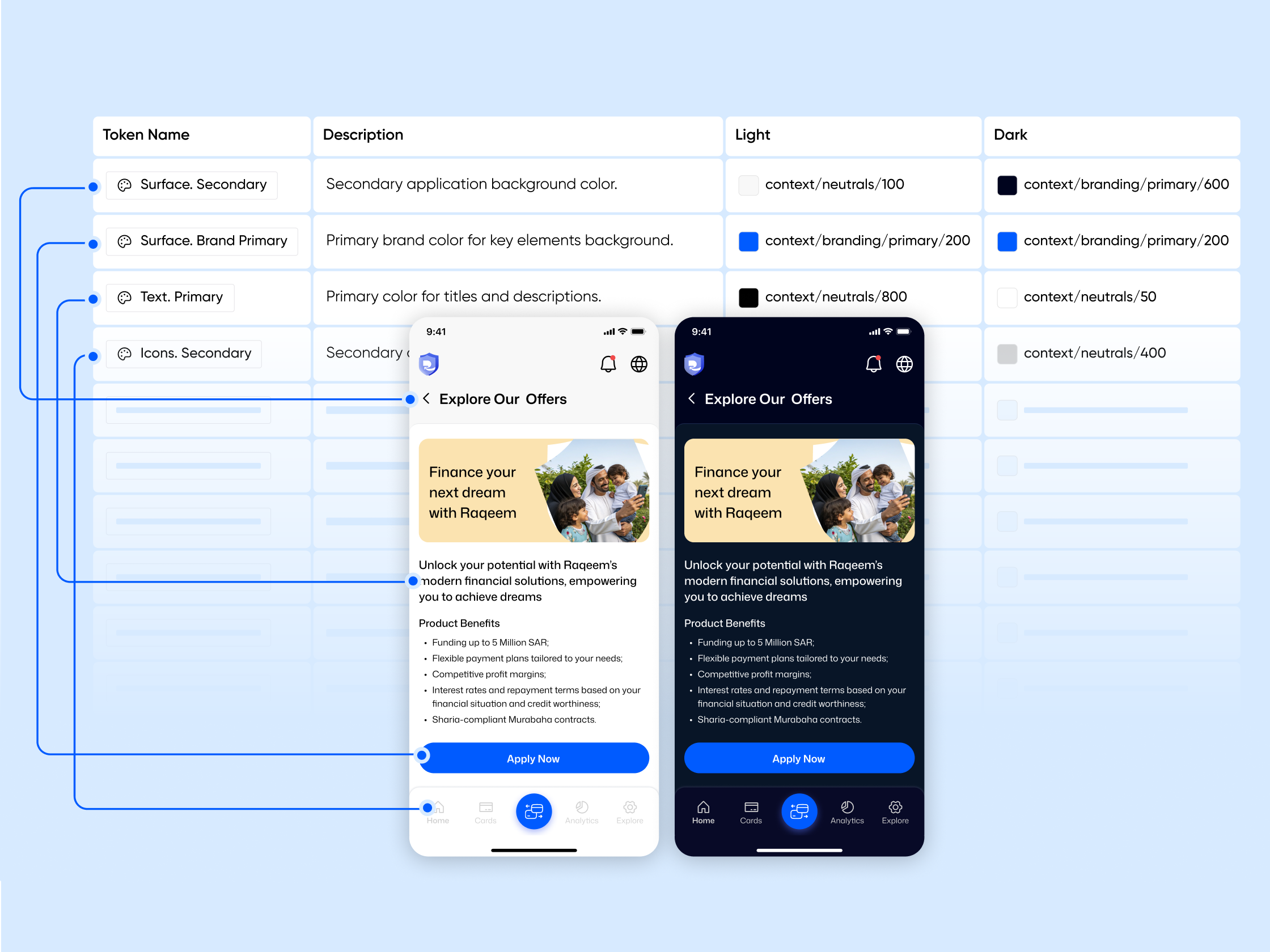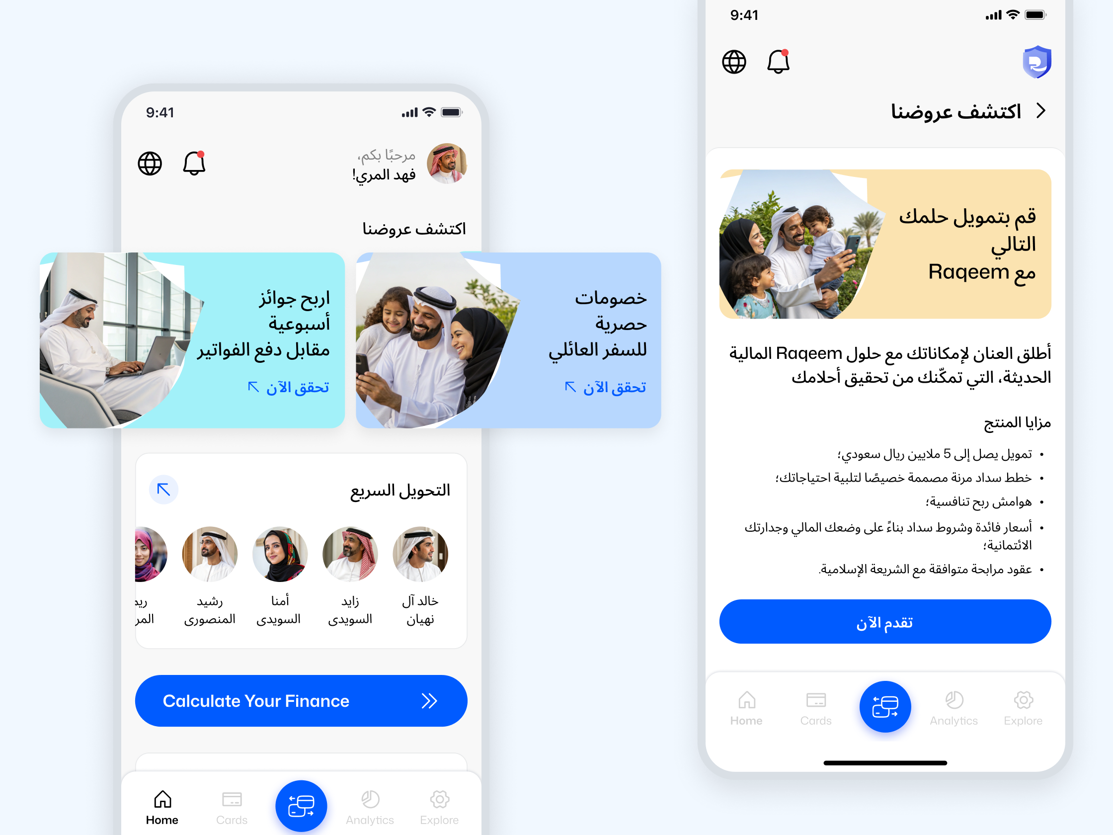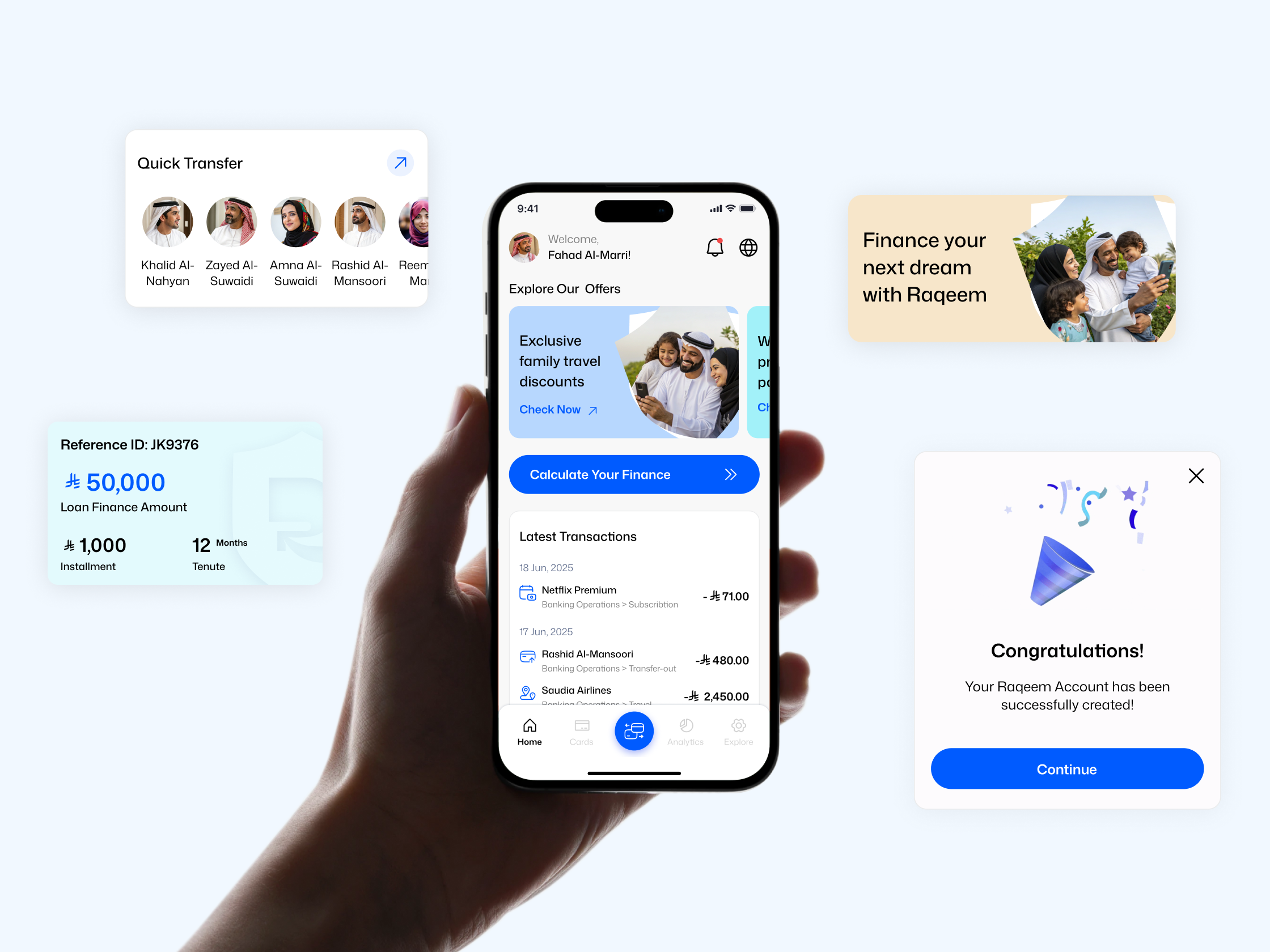 Raqeem Bank launched with a solid design foundation that supports secure transactions, clear financial communication, and future scalability. The product delivers a trustworthy, intuitive, and culturally adapted mobile banking experience, ready for long-term growth.